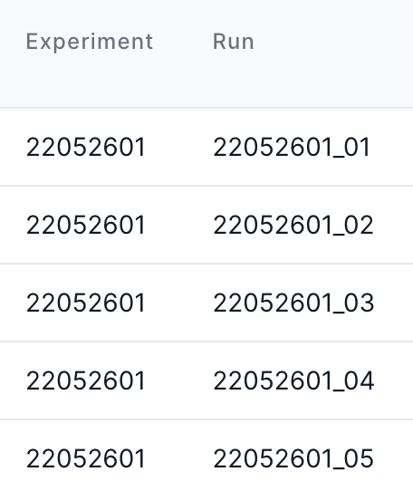 • Create a csv or excel sheet with headers "Experiment" and "Run"