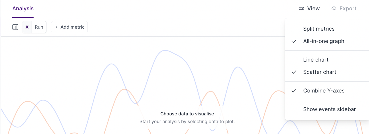 • This will show all metrics and runs on a singular graph.