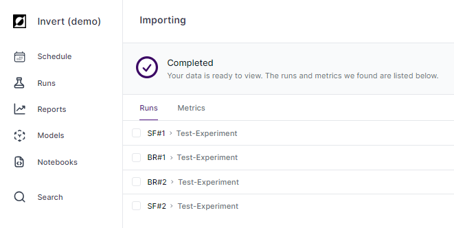 - All-in-one-graph: Summary view with all runs and all metrics in a single graph.