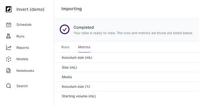 Customize the run data table to provide additional context to the timeseries graph. This includes displaying relevant metadata such as strain ID, run ID, bioreactor size, and more, enhancing the interpretability of the visualized data.