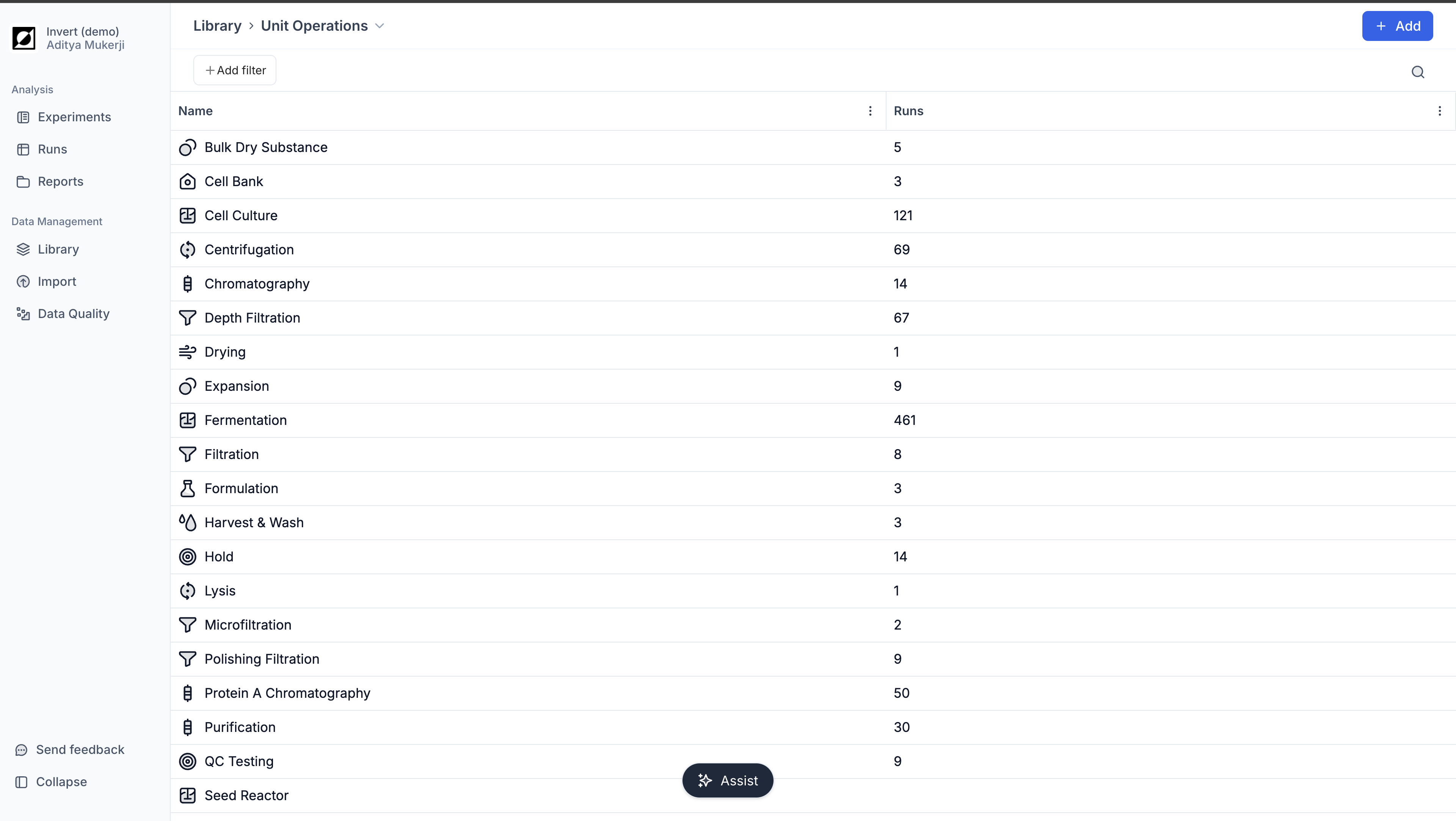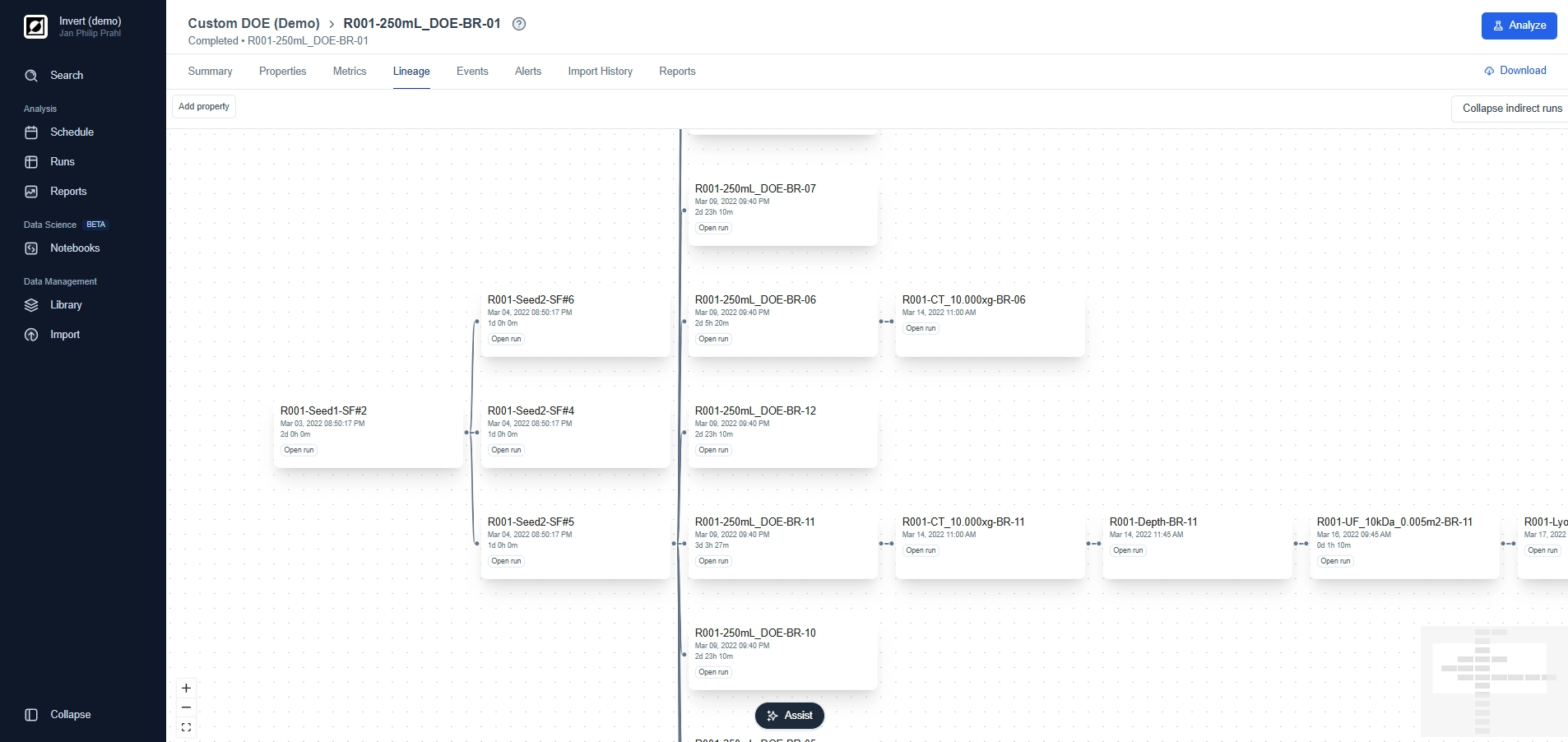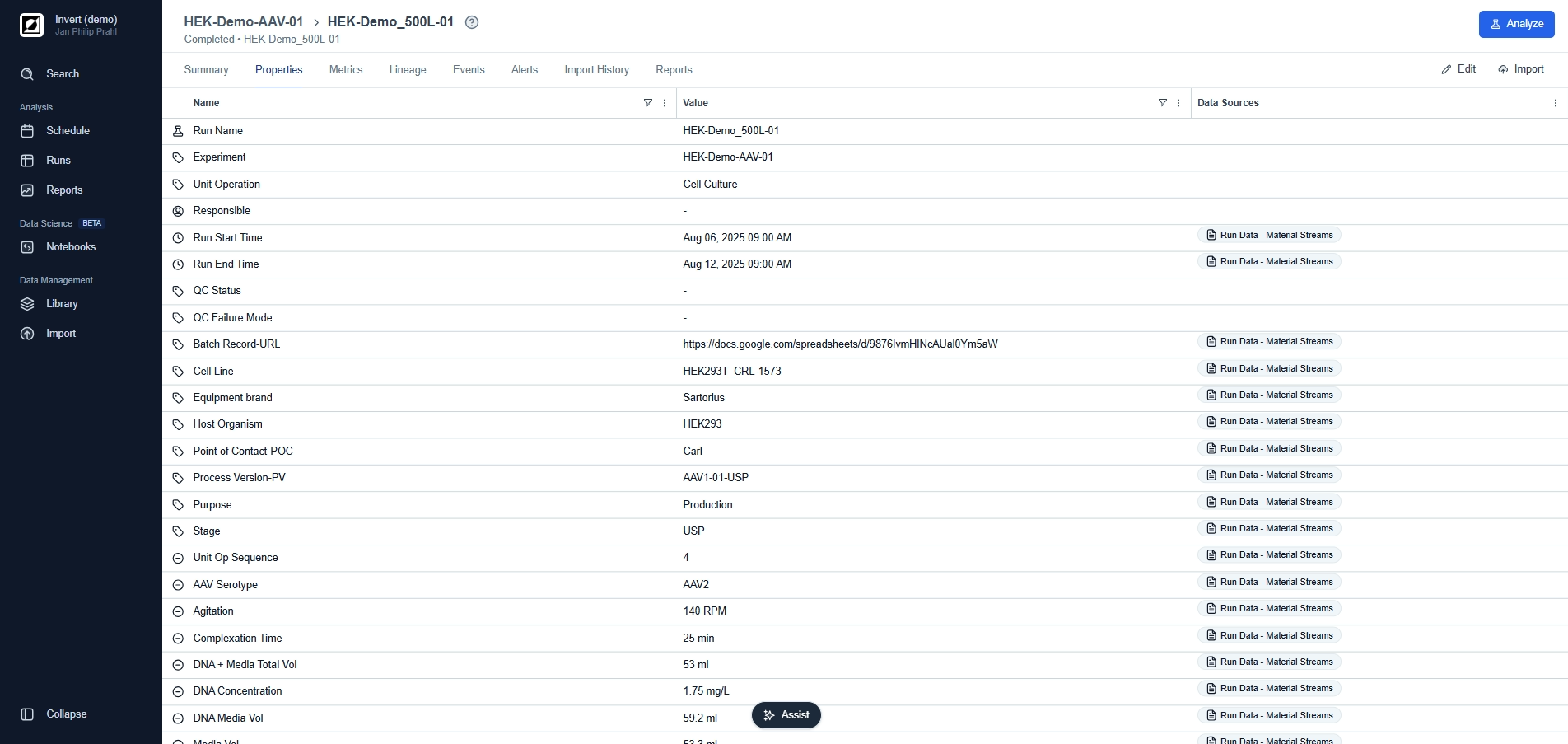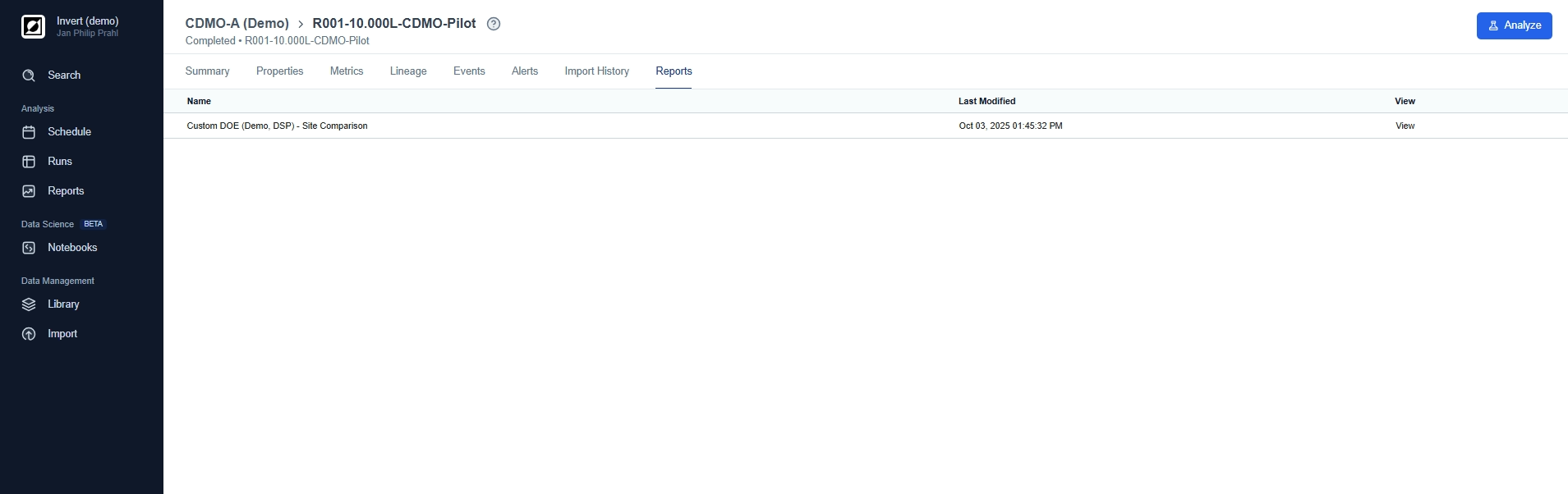 The Analysis page is your go-to destination for visualizing and analyzing your bioprocess data. Here, you can choose between line charts and scatter charts, providing you with the options you need to tell the story behind your data. Use line charts for timeseries data, customize the view and add process annotations using the event feature. For a more quantitative analysis use scatter charts to take advantage of aggregations and non-time based analysis.