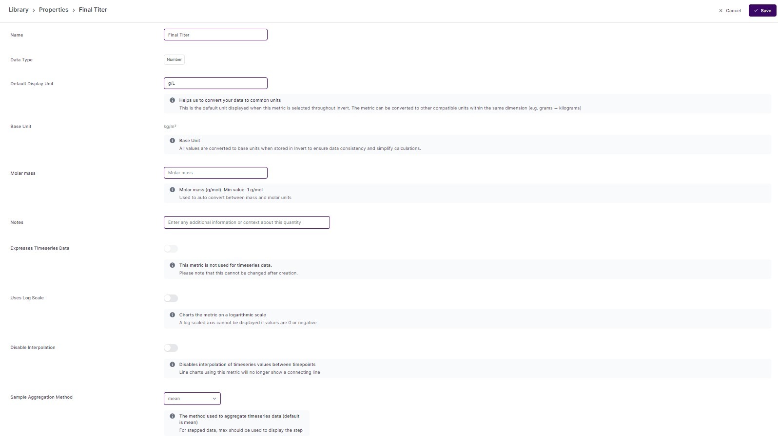 Provide additional context to your analysis by adding notes to your metrics or formulas (Library>Editing page). On the analysis page. hover over the relevant quantity name for quick accessing the note via tool tip hover.